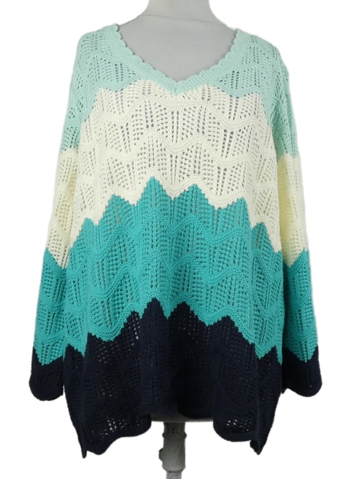Dámský tyrkysovo-bílo-tmavomodrý vzorovaný ažurový svetr Roman