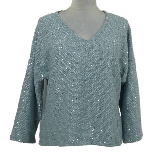 Dámský světlemodro-bílý vzorovaný crop svetr s flitry Gallery