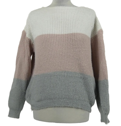 Dámský bílo-růžovo-šedý pruhovaný chlupatý svetr