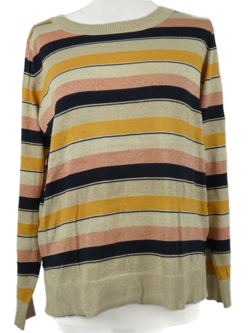 • Dámský béžovo-tmavomodro-růžový pruhovaný třpytivý svetr Next