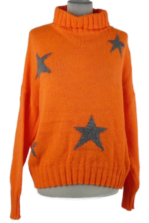 Dámský oranžový hvězdičkovaný svetr s rolákem