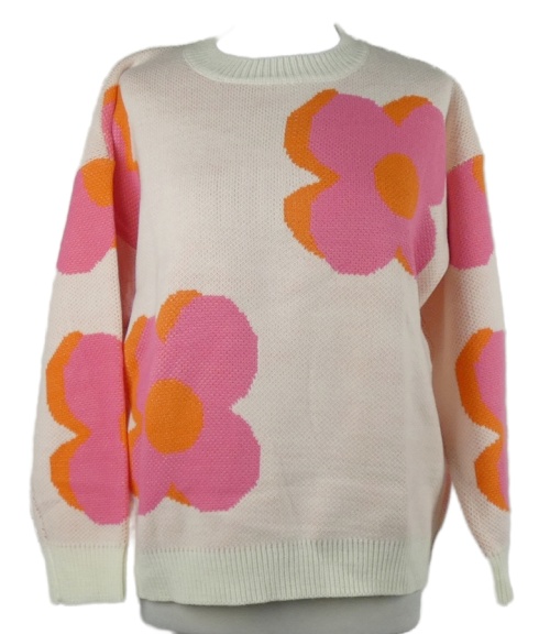 Dámský smetanový květovaný svetr