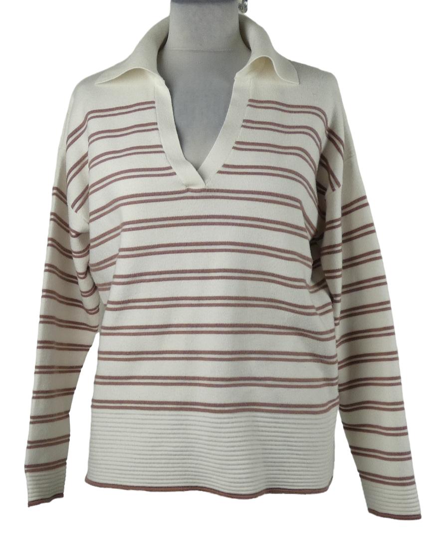 Dámský bílo-vínový pruhovaný svetr s límečkem Et Vous