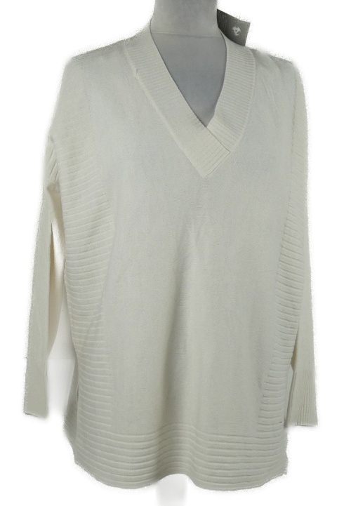 Dámský smetanový svetr s véčkovým výstřihem