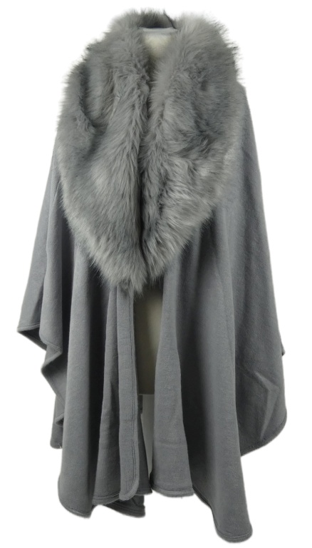 Dámský šedý svetrový pléd s kožíškem