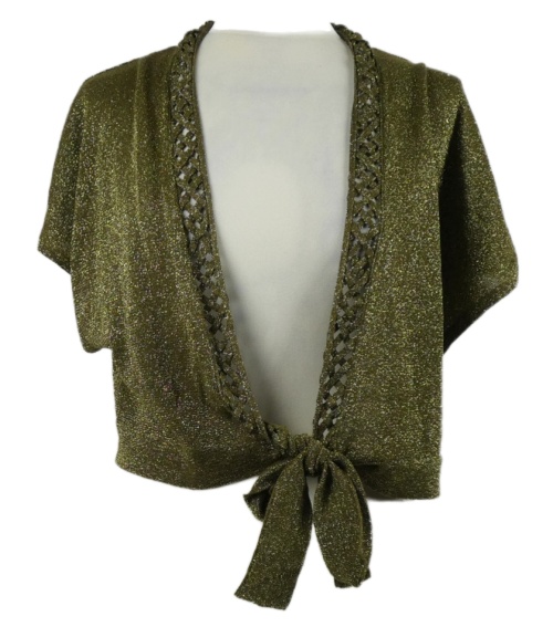 Dámské khaki třpytivé svetrové bolerko s uzlem David Emanuel