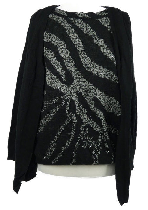 • Dámský černo-stříbrný vzorovaný vlněný svetr s kamínky Damart