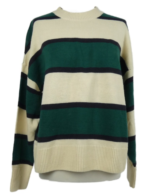 Dámský tmavozeleno-smetanovo-tmavomodrý pruhovaný svetr