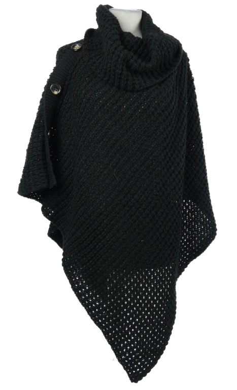 Dámské černé svetrové pončo s rolákem Laura Torelli