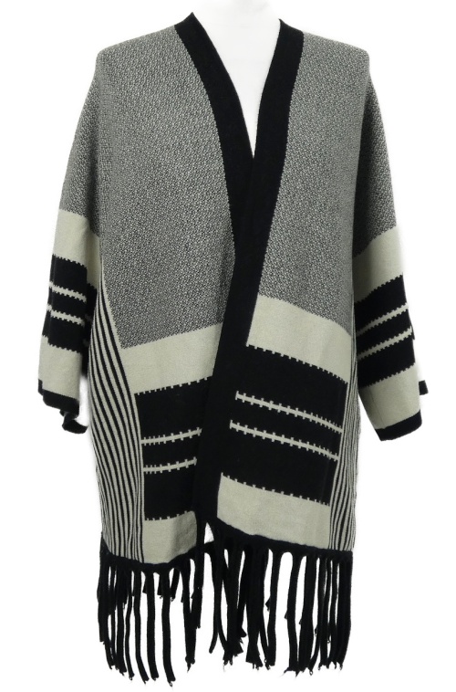 Dámský černo-bílý pruhovaný svetrový cardigán s třásněmi