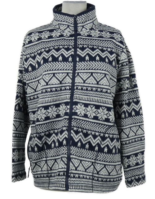 Dámský šedo-tmavomodrý vzorovaný pletený propínací svetr TU