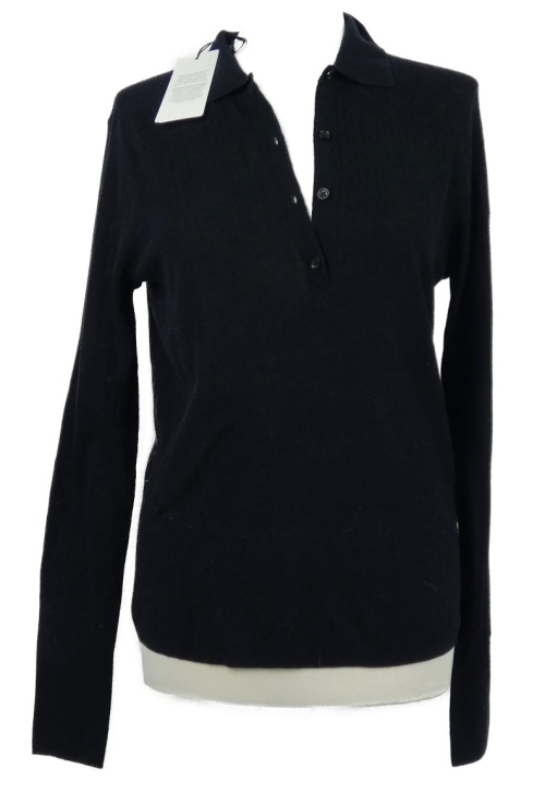Nové - Dámský tmavomodrý žebrovaný kašmírový svetr s límečkem