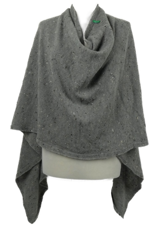 Dámské šedé melírované svetrové pončo s límcem Benetton