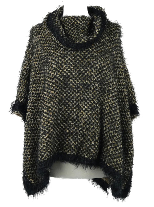 • Dámské černo-béžové vzorované svetrové pončo s komínovým límcem Apart