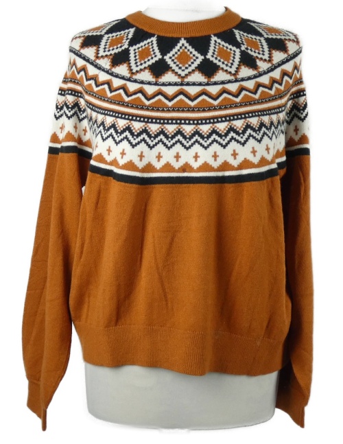 Dámský skořicovo-černý vzorovaný svetr Up2Fashion