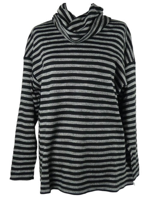 Dámský černo-šedý pruhovaný lehký svetr s komínovým límcem