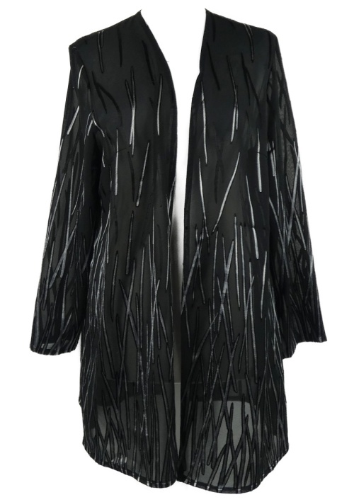 Dámský černý vzorovaný šifonový dlouhý cardigán