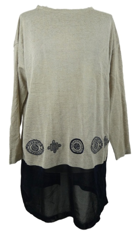 • Dámská béžovo-tmavomodrá úpletová lněná tunika s výšivkami Susan Dix