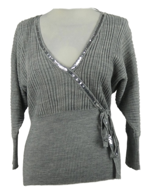Nové - Dámský šedý ažurový svetr s flitry George