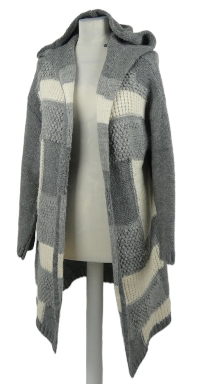Dámský šedo-bílý pruhovaný svetrový cardigán s kapucí George