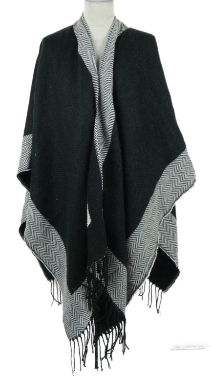 Dámský černo-bílý vzorovaný svetrový pléd s třásněmi Papaya