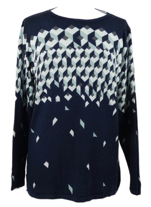 Dámský tmavomodro-bílý vzorovaný lehký svetr