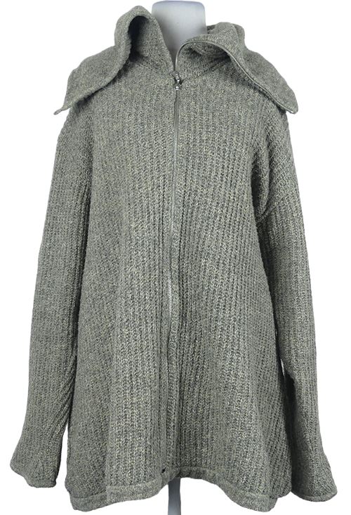 • Dámský béžovo-šedý melírovaný teplý propínací svetr s límcem