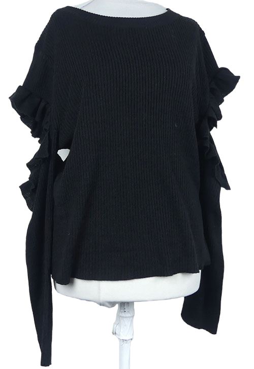 Dámský černý žebrovaný svetr s průstřihy a volánky BeYou