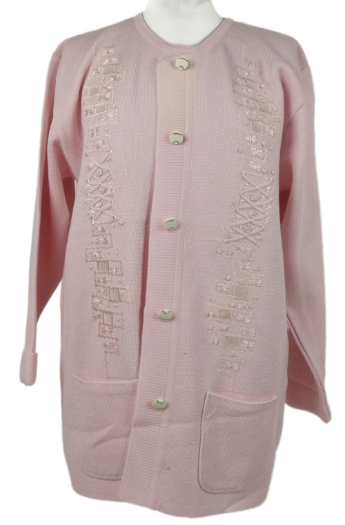 Dámský světlerůžový propínací svetr s výšivkou Paramour