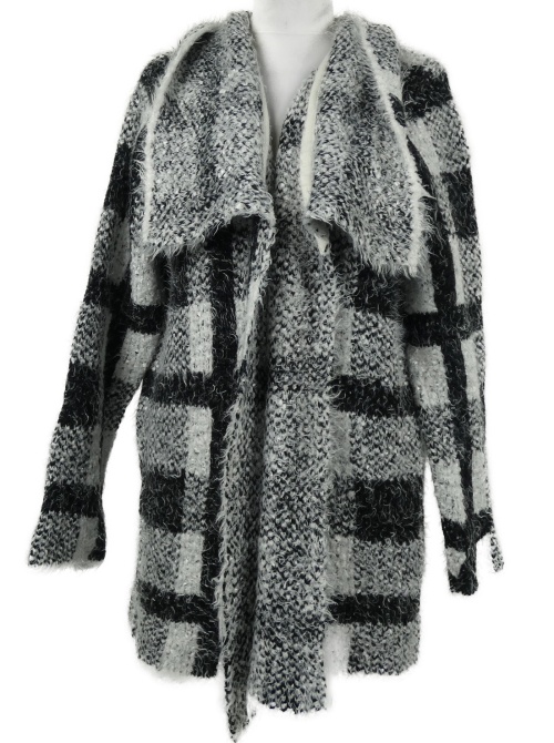 Dámský černo-bílý kostkovaný propínací svetr s límcem