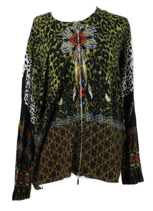 Dámský vzroovaný lehký propínací svetr s kamínky Ovanti