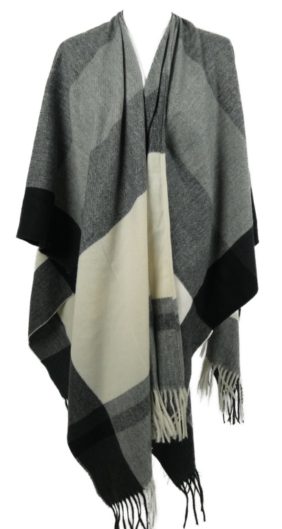 Dámský šedo-černo-bílý vzorovaný pletený pléd s třásněmi