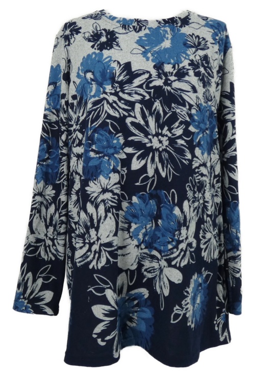 Dámská šedo-tmavomodrá květovaná svetrová tunika Isle
