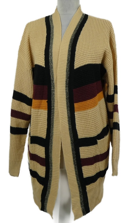 Dámský béžovo-černo-vínový pruhovaný svetrový cardigán