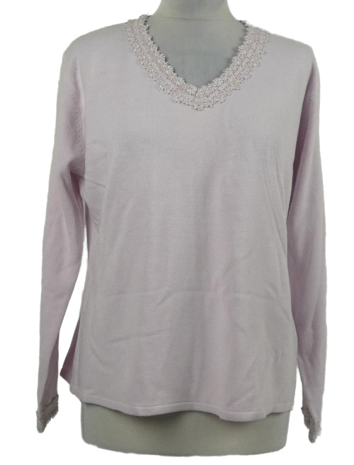 Dámský světlerůžový svetr s krajkovým lemem Alibi Knits