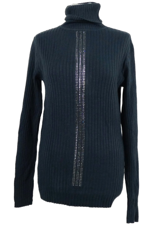 Dámský tmavomodrý žebrovaný svetrový rolák s kamínky