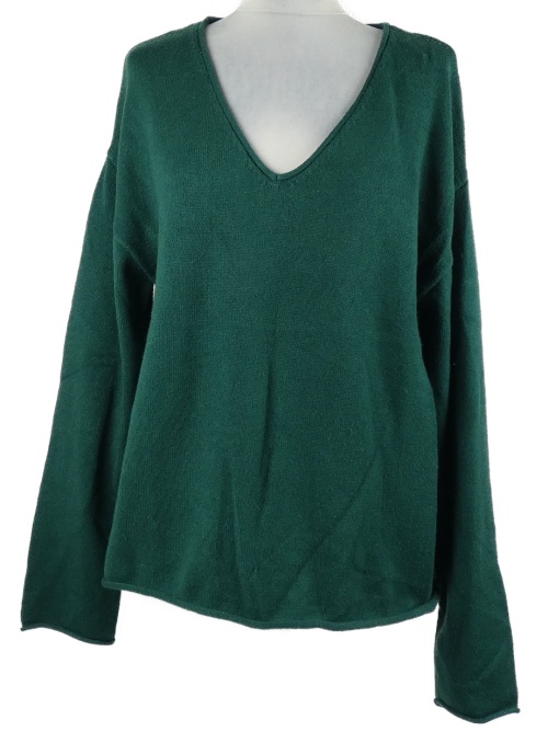 Dámský tmavozelený svetr s hlubokým výstřihem Amisu