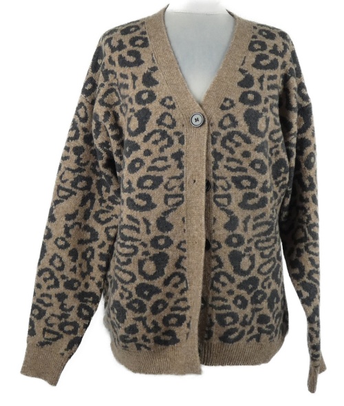Dámský béžovo-hnědý vzorovaný propínací svetr