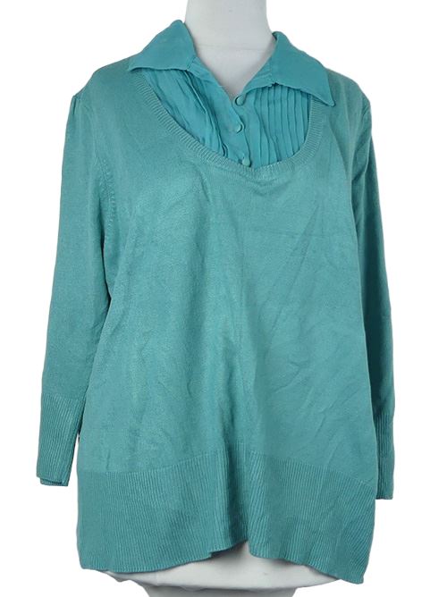 Dámský modrozelený svetr s halenkovým límečkem M&S