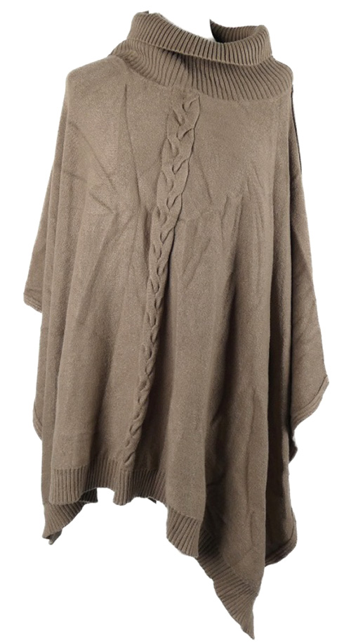 Dámské hnědé svetrové pončo s rolákem Joss