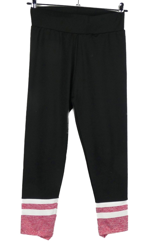 Dámské černo-růžové sportovní capri legíny s pruhy