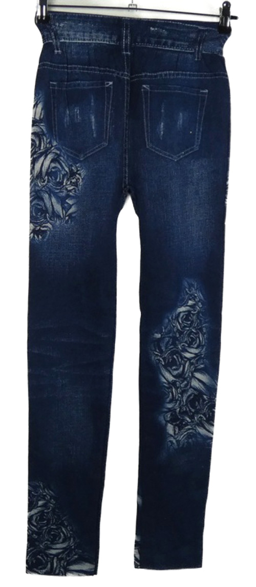 Nové - Dámské tmavomodré legíny riflového vzhledu s potiskem