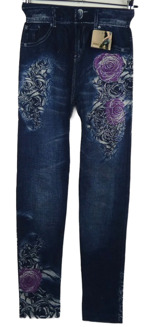 Nové - Dámské tmavomodré legíny riflového vzhledu s potiskem