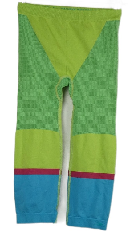 Dámské limetkovo-modré sportovní capri legíny s pruhy