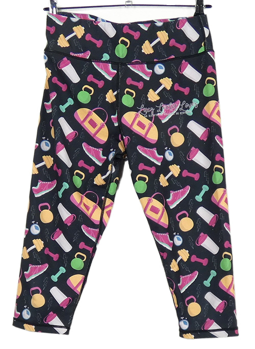 Dámské černo-barevné sportovní capri legíny s obrázky