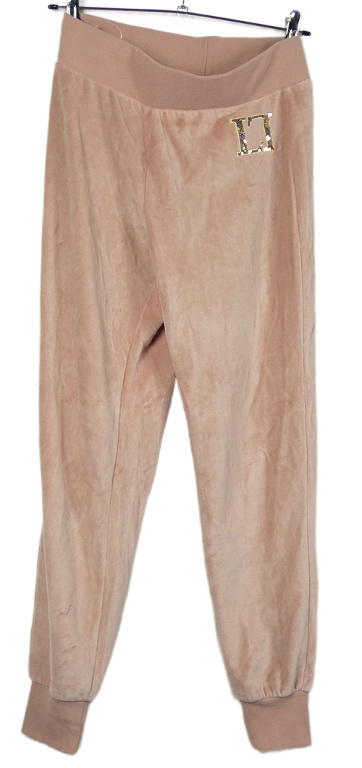 Dámské růžové sametové tepláky s nápisem z flitrů Lipsy