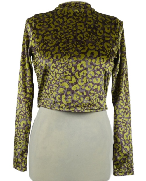 Dámské vínovo-limetkové vzorované sametové crop triko