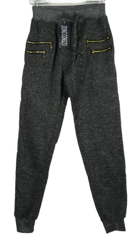 Nové - Dámské šedo-černé melírované cuff tepláky se zipy