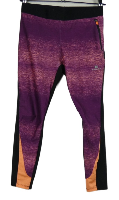 Dámské černo-purpurovo-oranžové vzorované sportovní funkční legíny Domyos