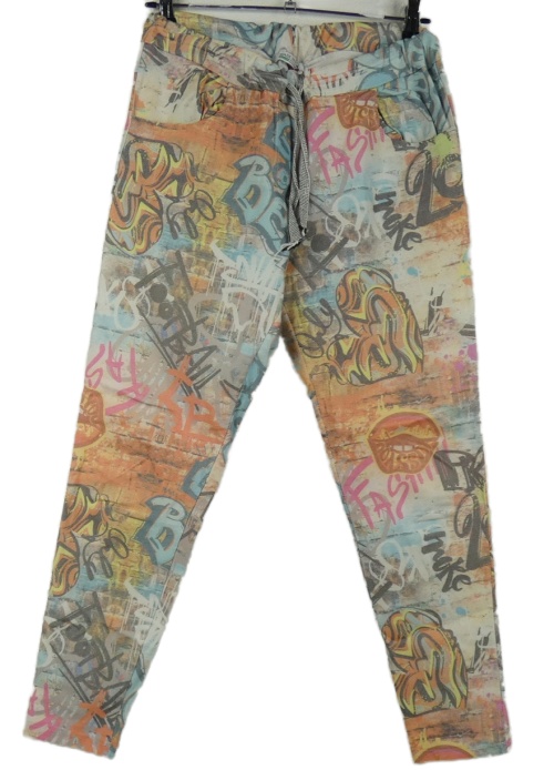 Dámské barevné vzorované teplákové kalhoty s nápisy